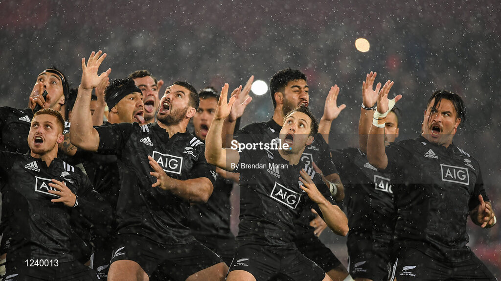 11 November 2016; The New Zealand Maori All Blacks perform 'The Haka' ahead of the match between Munster and the New Zealand Maori All Blacks at Thomond Park in Limerick. Photo by Brendan Moran/Sportsfile