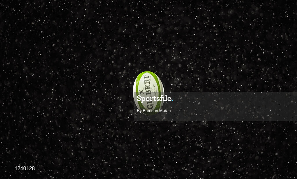 11 November 2016; A rugby ball flies through the air in heavy rain during the match between Munster and the New Zealand Maori All Blacks at Thomond Park in Limerick. Photo by Brendan Moran/Sportsfile