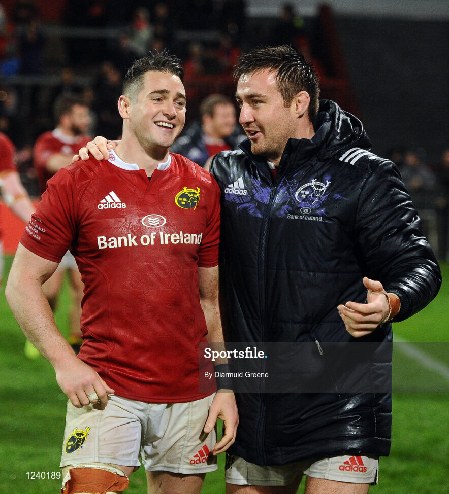 11 November 2016; Ronan O'Mahony and Niall Scannell of Munster after the match between Munster and the New Zealand Maori All Blacks at Thomond Park in Limerick. Photo by Diarmuid Greene/Sportsfile