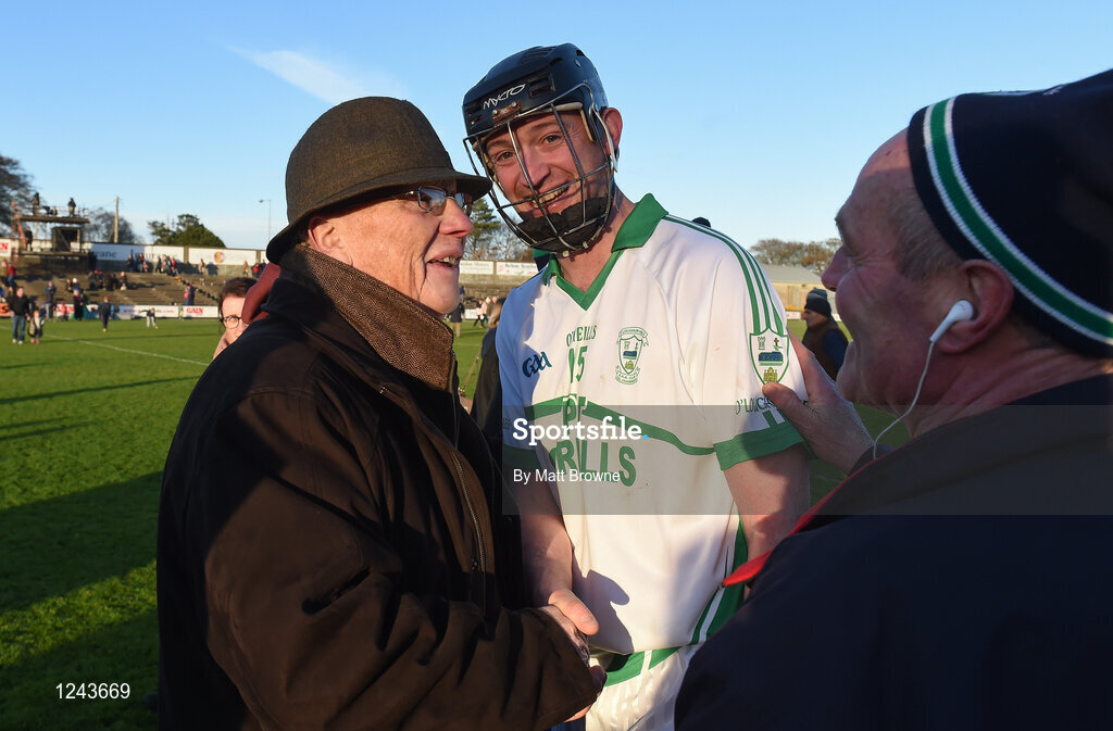 20 November 2016; Martin Comerford of O'Loughlin Gaels is congratulated by Peter Doyle and Eamon Dowling after the AIB Leinster GAA Hurling Senior Club Championship semi-final match between Oulart the Ballagh and O'Loughlin Gaels at Innovate Wexford Park in Wexford. Photo by Matt Browne/Sportsfile
