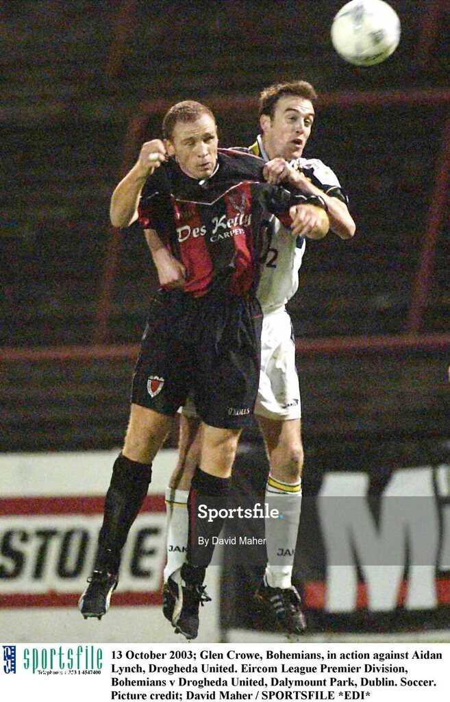 13 October 2003; Glen Crowe, Bohemians, in action against Aidan Lynch, Drogheda United. Eircom League Premier Division, Bohemians v Drogheda United, Dalymount Park, Dublin. Soccer. Picture credit; David Maher / SPORTSFILE *EDI*