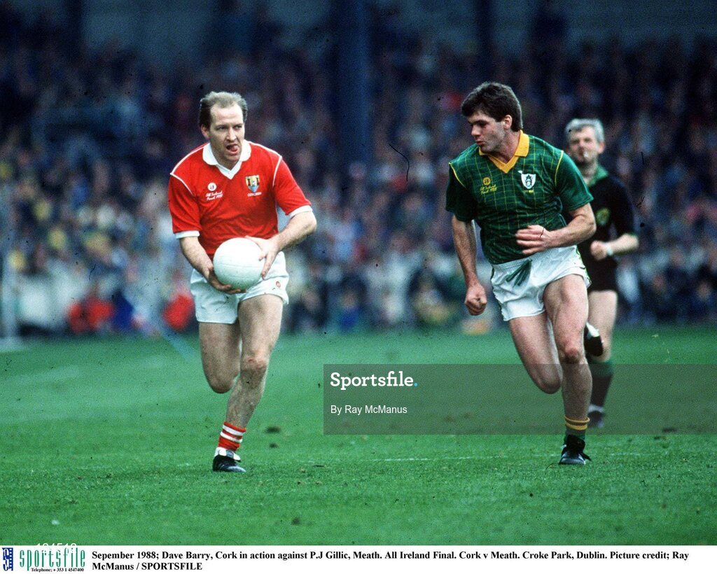 18 September 1988; Dave Barry, Cork, in action against P.J Gillic, Meath. All-Ireland Senior Football Final, Meath v Cork, Croke Park, Dublin. Picture credit; Ray McManus / SPORTSFILE