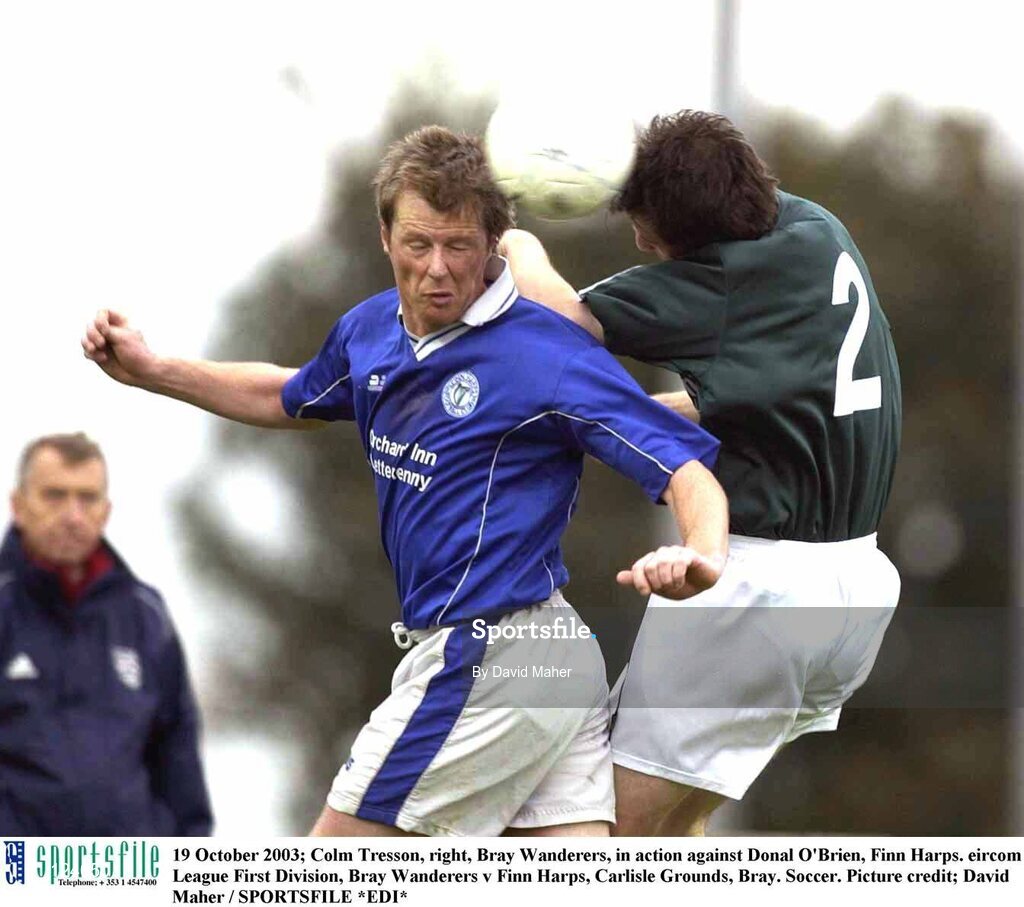 19 October 2003; Colm Tresson, right, Bray Wanderers, in action against Donal O'Brien, Finn Harps. eircom League First Division, Bray Wanderers v Finn Harps, Carlisle Grounds, Bray. Soccer. Picture credit; David Maher / SPORTSFILE *EDI*