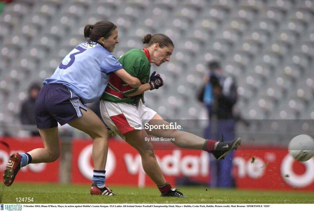 5 October 2003; Diane O'Hora, Mayo, in action against Dublin's Louise Keegan. TG4 Ladies All-Ireland Senior Football Championship Final, Mayo v Dublin, Croke Park, Dublin. Picture credit; Matt Browne / SPORTSFILE *EDI*