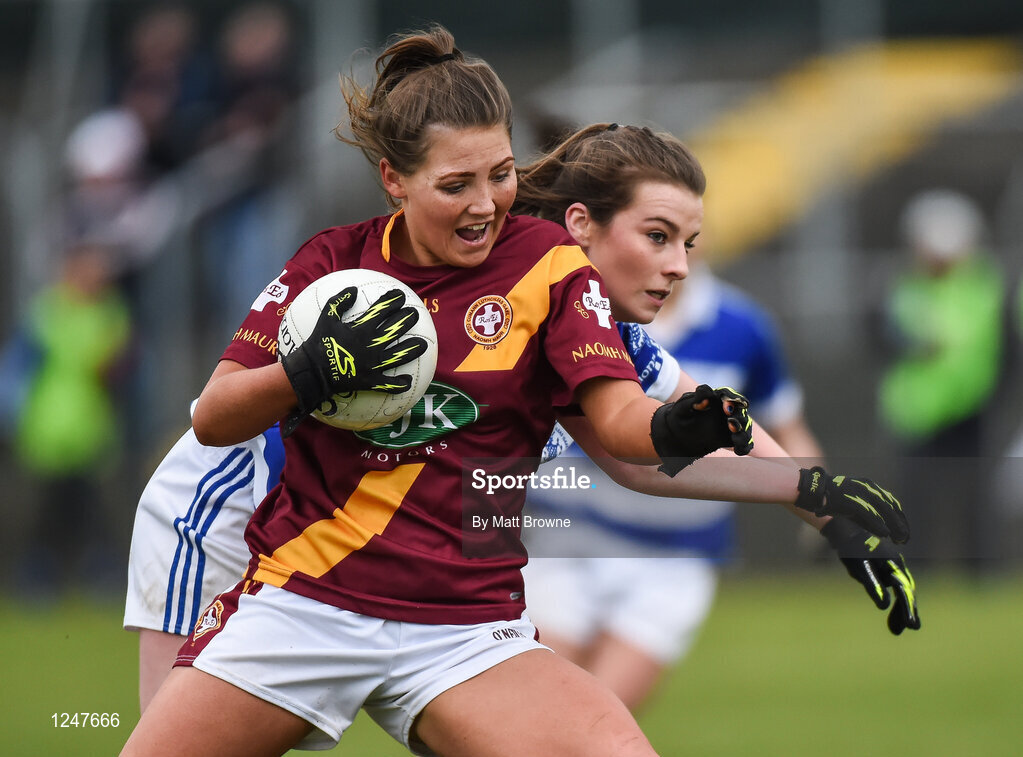 3 December 2016; Niamh Carthy of St. Maurs in action against Tracy McCarthy of Kinsale during the All Ireland Junior Club Championship Final 2016 match between Kinsale and St. Maurs at Dr Cullen Park in Carlow. Photo by Matt Browne/Sportsfile