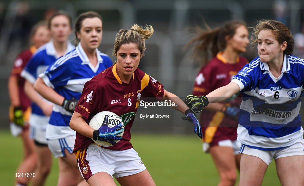 3 December 2016; Eadaoinn McGuinness of St. Maurs in action against Caoimhe O'Callaghan of Kinsale during the All Ireland Junior Club Championship Final 2016 match between Kinsale and St. Maurs at Dr Cullen Park in Carlow. Photo by Matt Browne/Sportsfile