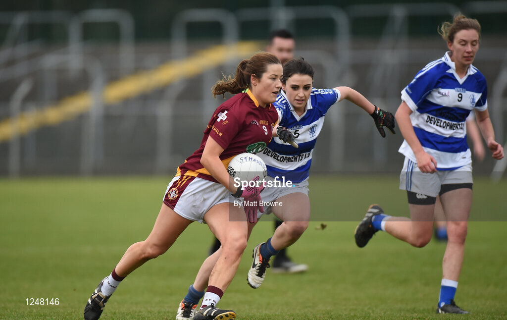 3 December 2016; Olivia Leonard of St. Maurs in action against Georgina Buckley of Kinsale during the All Ireland Junior Club Championship Final 2016 match between Kinsale and St. Maurs at Dr Cullen Park in Carlow. Photo by Matt Browne/Sportsfile