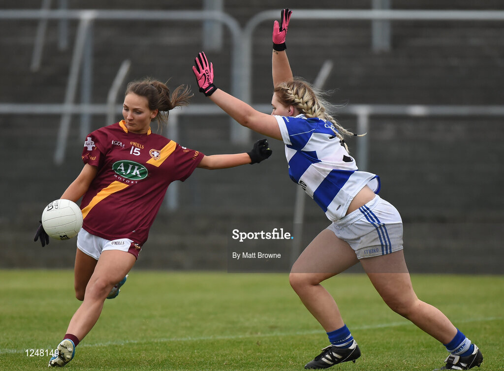 3 December 2016; Laura Carthy of St. Maurs in action against Emma O'Brien of Kinsale during the All Ireland Junior Club Championship Final 2016 match between Kinsale and St. Maurs at Dr Cullen Park in Carlow. Photo by Matt Browne/Sportsfile