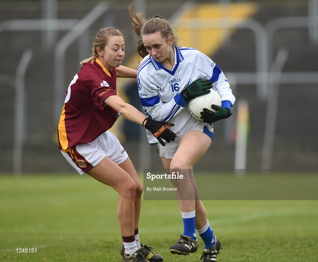3 December 2016; Dara Tyner of Kinsale in action against Leona Halford of St. Maurs during the All Ireland Junior Club Championship Final 2016 match between Kinsale and St. Maurs at Dr Cullen Park in Carlow. Photo by Matt Browne/Sportsfile