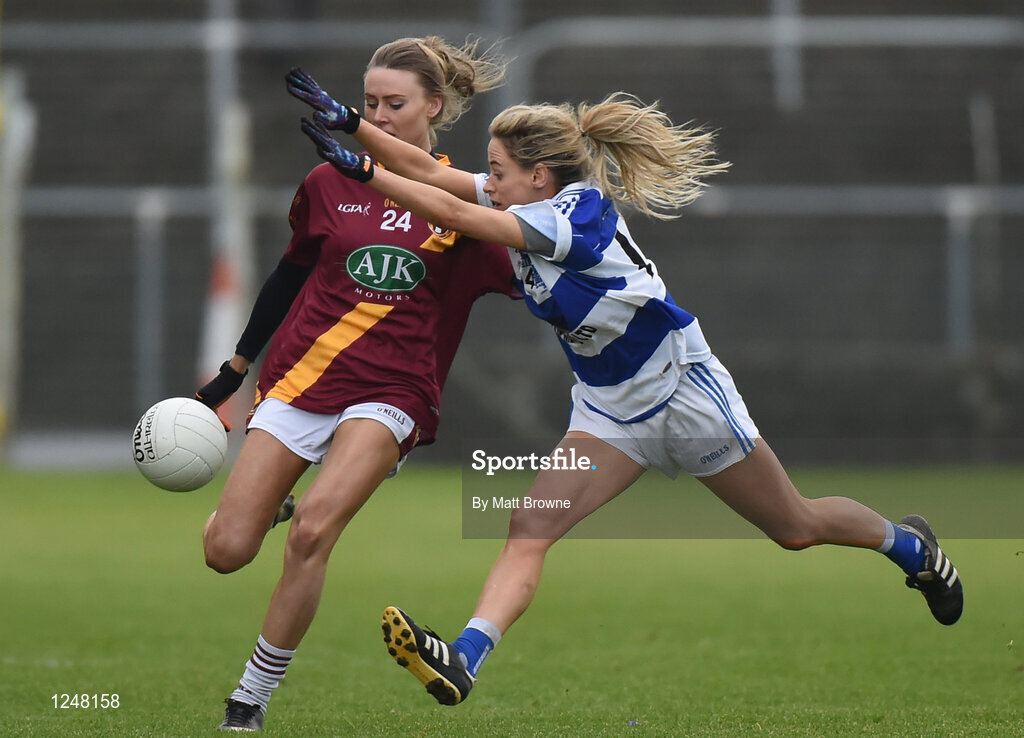 3 December 2016; Molly Moran of St. Maurs in action against Orla Finn of Kinsale during the All Ireland Junior Club Championship Final 2016 match between Kinsale and St. Maurs at Dr Cullen Park in Carlow. Photo by Matt Browne/Sportsfile