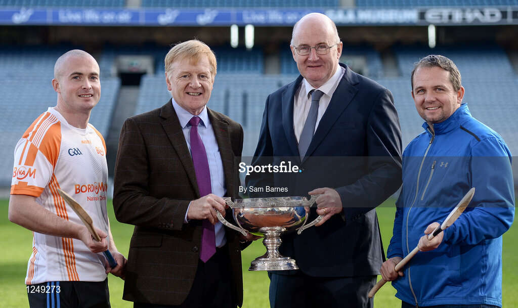 8 December 2016; In attendance during the Bord na Móna Leinster GAA Series 2017 Launch at Croke Park in Dublin are, from left, David O'Callaghan of Dublin, Pat Fitzgerald of Bord Na Mona, John Horan, Chairman of Leinster Council, and Davy Fitzgerald, Wexford Hurling Manager. Photo by Sam Barnes/Sportsfile