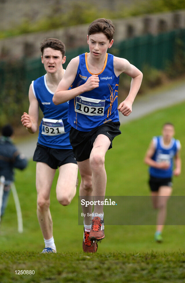 11 December 2016; Cian McPhillips, Longford A.C, Co. Longford, leads the Boys U15 3500m race during the Irish Life Health Novice & Juvenile Uneven Age National Cross Country Championships at Dundalk I.T. in Co. Louth. Photo by Seb Daly/Sportsfile