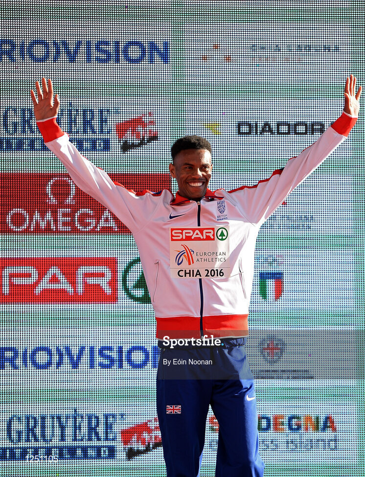 11 December 2016; Mahamed Mahamed of Great Britain who came third place in the mens under 20 race during the medal presentation at the 2016 Spar European Cross Country Championships in Chia, Italy. Photo by Eóin Noonan/Sportsfile