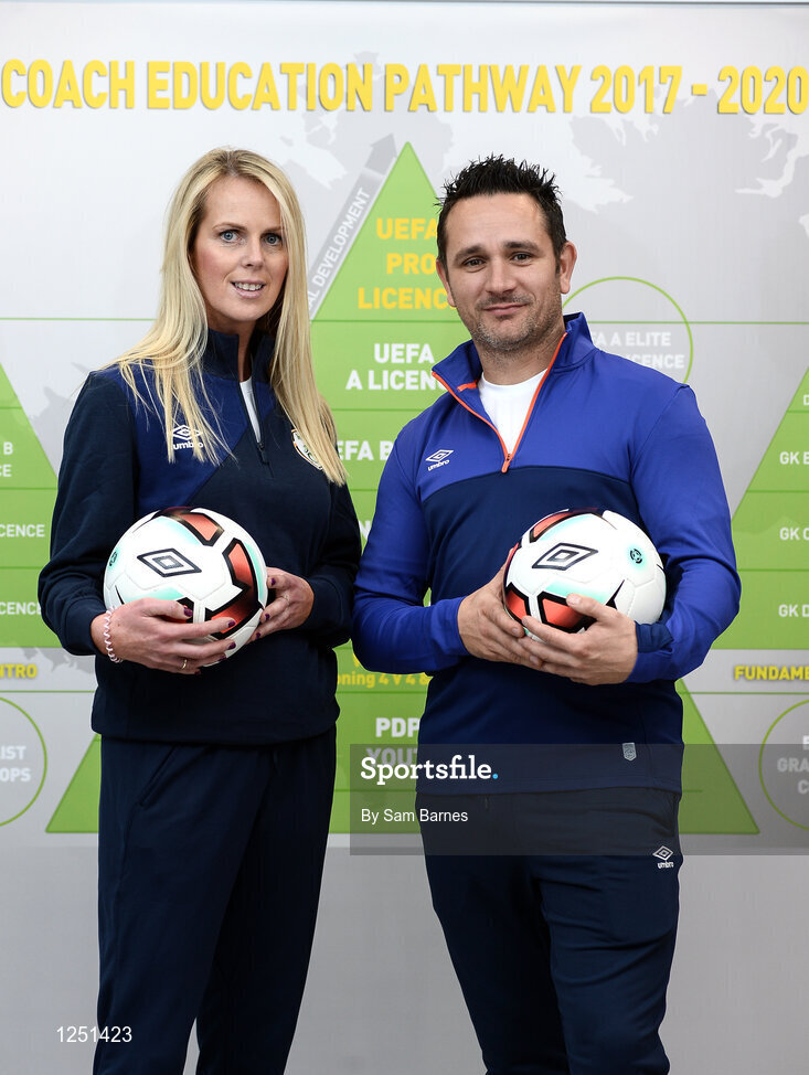 12 December 2016; Coaches Barbara O'Connell, left, and Marcus Grant during the FAI Coach Education Pathway 2017-2020 Launch at FAI HQ in Abbotstown, Dublin. Photo by Sam Barnes/Sportsfile