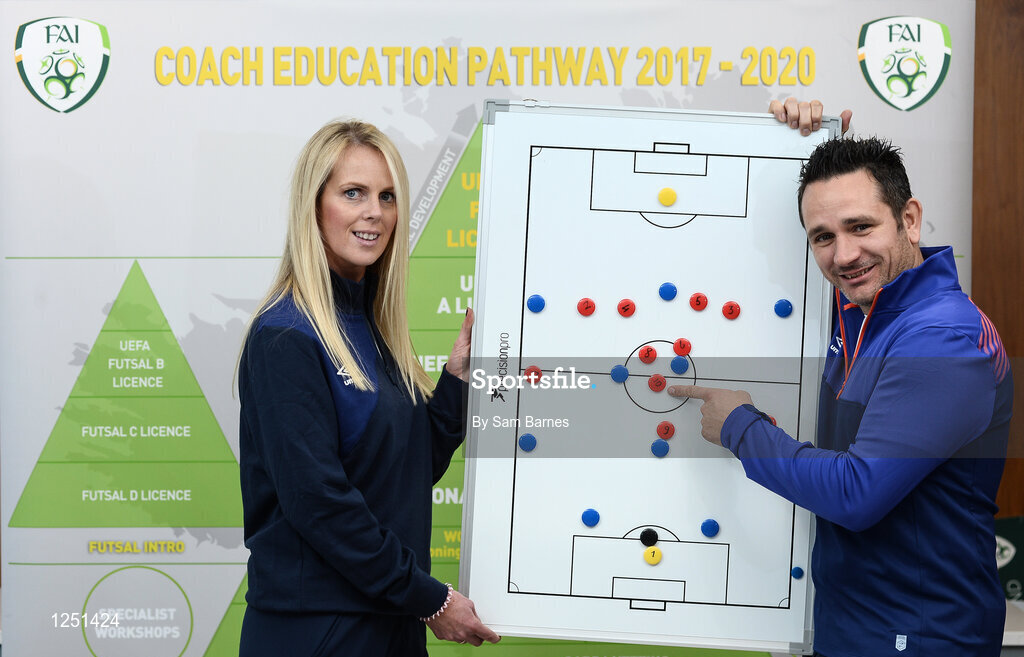 12 December 2016; Coaches Barbara O'Connell, left, and Marcus Grant during the FAI Coach Education Pathway 2017-2020 Launch at FAI HQ in Abbotstown, Dublin. Photo by Sam Barnes/Sportsfile