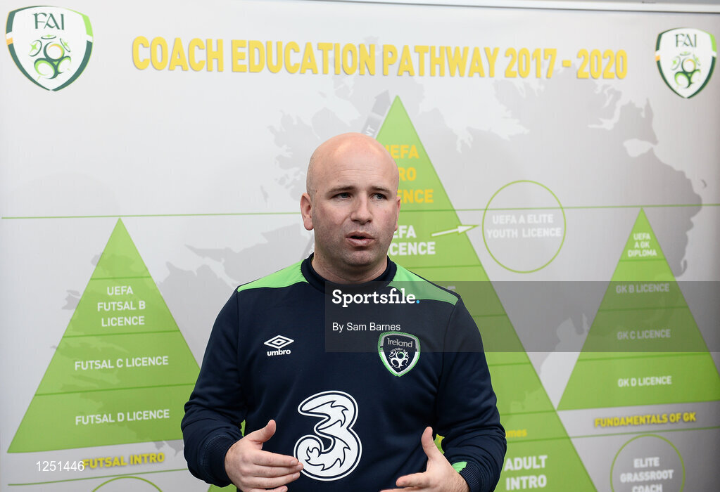12 December 2016; FAI Coach Education Manager Niall O'Regan speaking during the FAI Coach Education Pathway 2017-2020 Launch at FAI HQ in Abbotstown, Dublin. Photo by Sam Barnes/Sportsfile