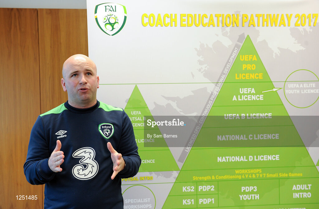 12 December 2016; FAI Coach Education Manager Niall O'Regan speaking during the FAI Coach Education Pathway 2017-2020 Launch at FAI HQ in Abbotstown, Dublin. Photo by Sam Barnes/Sportsfile