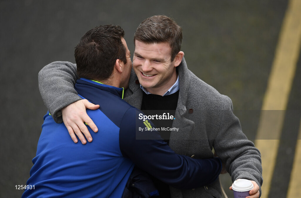 31 December 2016; Former Ireland and Leinster centre Gordon D'Arcy, right, with Leinster scrum coach John Fogarty prior to the Guinness PRO12 Round 12 match between Leinster and Ulster at the RDS Arena in Dublin. Photo by Stephen McCarthy/Sportsfile