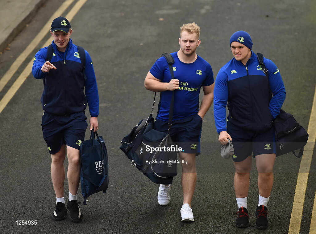 31 December 2016; Leinster players, from left, Dan Leavy, Jeremy Loughman and Andrew Porter arrive prior to the Guinness PRO12 Round 12 match between Leinster and Ulster at the RDS Arena in Dublin. Photo by Stephen McCarthy/Sportsfile