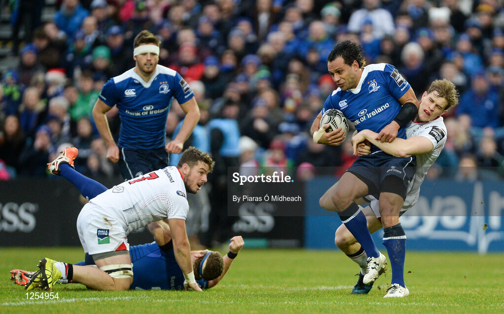 31 December 2016; Isa Nacewa of Leinster is tackled by Andrew Trimble of Ulster during the Guinness PRO12 Round 12 match between Leinster and Ulster at the RDS Arena in Dublin. Photo by Piaras Ó Mídheach/Sportsfile