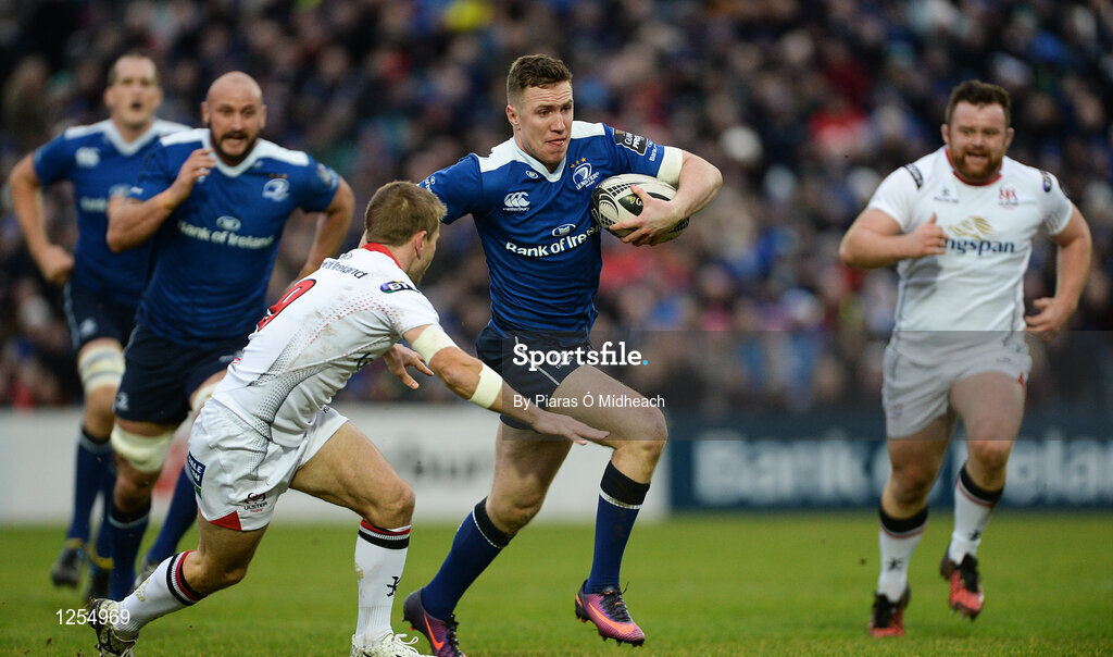 31 December 2016; Rory O’Loughlin of Leinster gets past Paul Marshall of Ulster on his way to scoring his side's first try during the Guinness PRO12 Round 12 match between Leinster and Ulster at the RDS Arena in Dublin. Photo by Piaras Ó Mídheach/Sportsfile