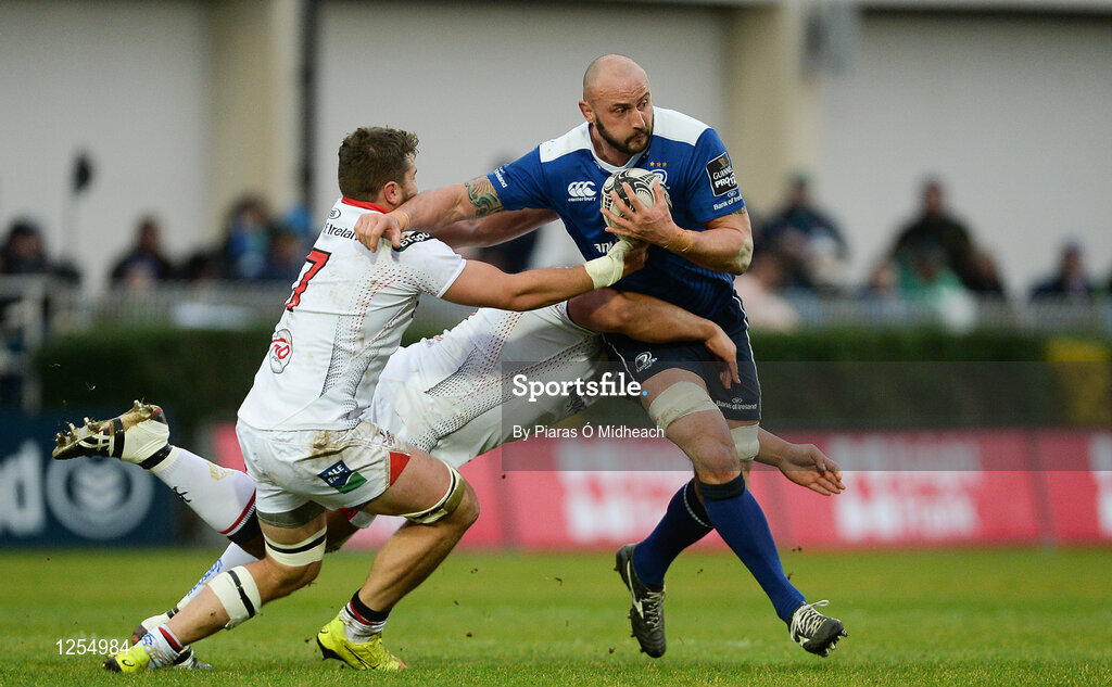 31 December 2016; Hayden Triggs of Leinster, is tackled by Sean Reidy and Rodney Ah You, behind, of Ulster during the Guinness PRO12 Round 12 match between Leinster and Ulster at the RDS Arena in Dublin. Photo by Piaras Ó Mídheach/Sportsfile