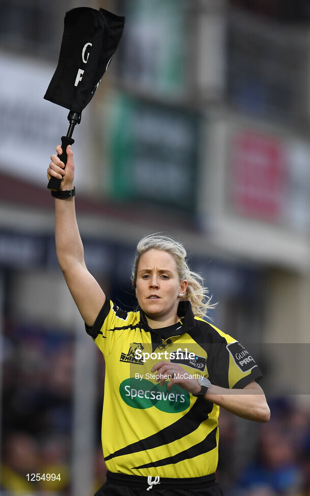 31 December 2016; Touch judge Joy Neville during the Guinness PRO12 Round 12 match between Leinster and Ulster at the RDS Arena in Dublin. Photo by Stephen McCarthy/Sportsfile