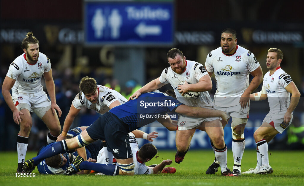 31 December 2016; Andy Warrick of Ulster is tackled by Devin Toner of Leinster during the Guinness PRO12 Round 12 match between Leinster and Ulster at the RDS Arena in Dublin. Photo by David Fitzgerald/Sportsfile