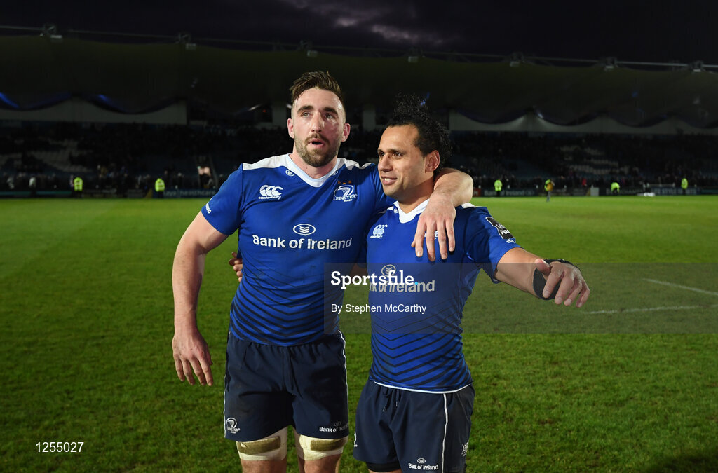 31 December 2016; Jack Conan, left, and Isa Nacewa of Leinster following the Guinness PRO12 Round 12 match between Leinster and Ulster at the RDS Arena in Dublin. Photo by Stephen McCarthy/Sportsfile