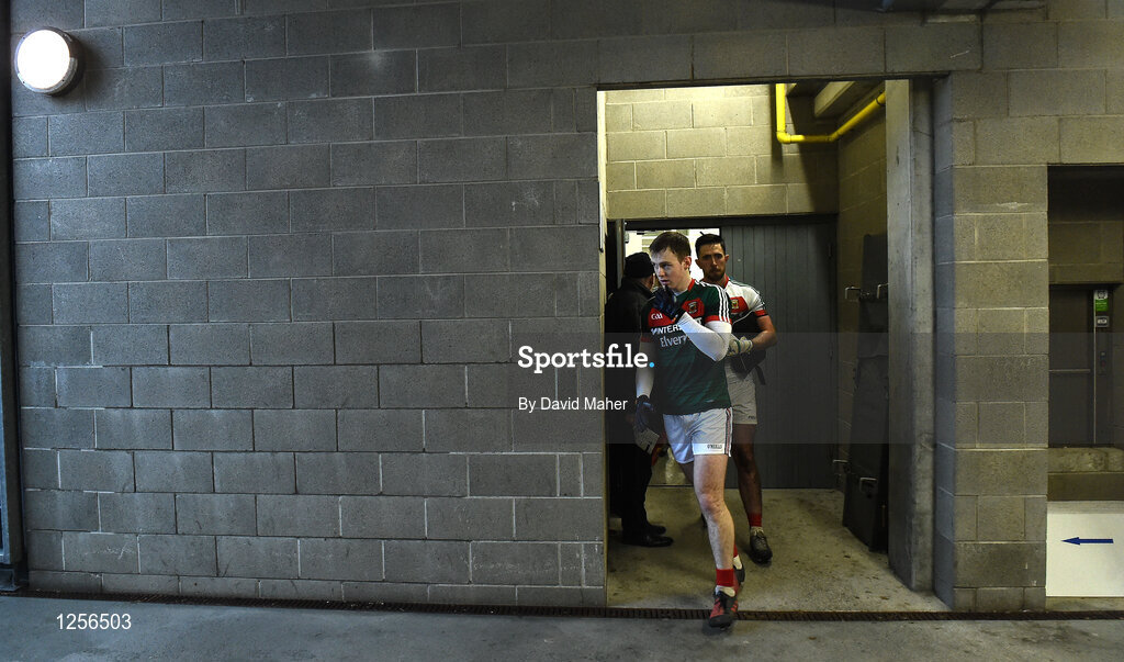 8 January 2017; Captain of Mayo Shane Nally leads the team out for the start of the Connacht FBD League Section A Round 1 match between Mayo and NUI Galway at Elvery's MacHale Park in Castlebar, Co. Mayo. Photo by David Maher/Sportsfile