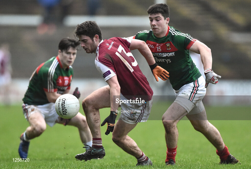 8 January 2017; Ruairi Greene of NUIG in action against Brian Reape of Mayo during the Connacht FBD League Section A Round 1 match between Mayo and NUI Galway at Elvery's MacHale Park in Castlebar, Co. Mayo. Photo by David Maher/Sportsfile