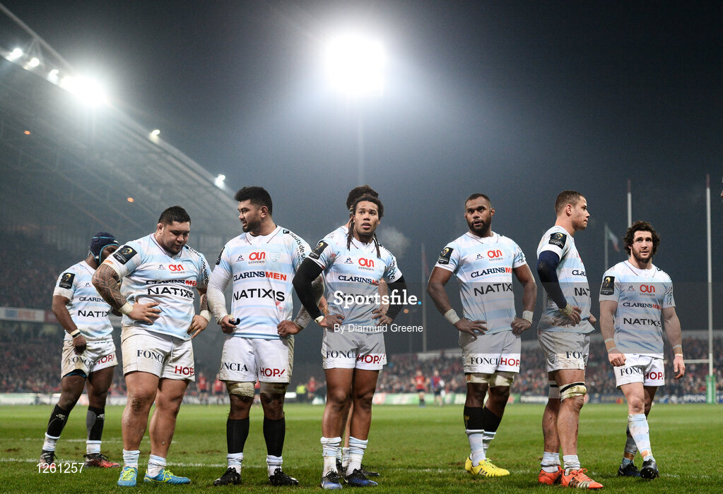 21 January 2017; Racing 92 players during the European Rugby Champions Cup Pool 1 Round 6 match between Munster and Racing 92 at Thomond Park in Limerick. Photo by Diarmuid Greene/Sportsfile