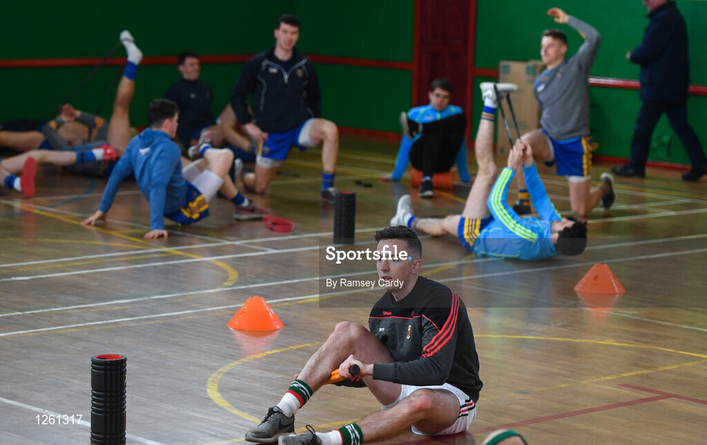 22 January 2017; Evan Regan of Mayo warms-up in front of the Roscommon team ahead of the Connacht FBD League Section A Round 3 match between Roscommon and Mayo at St. Brigids GAA Club in Kiltoom, Co. Roscommon. Photo by Ramsey Cardy/Sportsfile