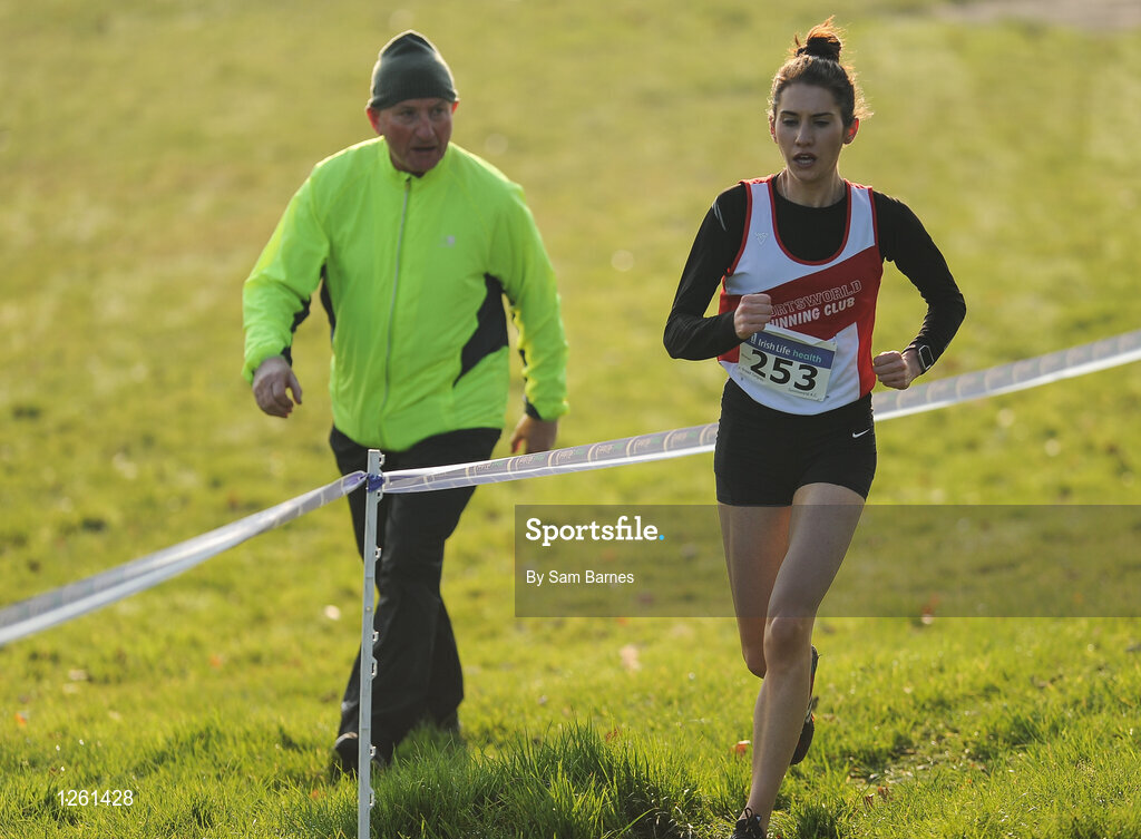 22 January 2017; Sinead Tangney of Sportsworld AC, Co. Dublin, on her way to finishing second in the intermediate women's race during the Irish Life Health Intermediate & Juvenile Inter Club Relay at Palace Grounds in Tuam, Co.Galway. Photo by Sam Barnes/Sportsfile
