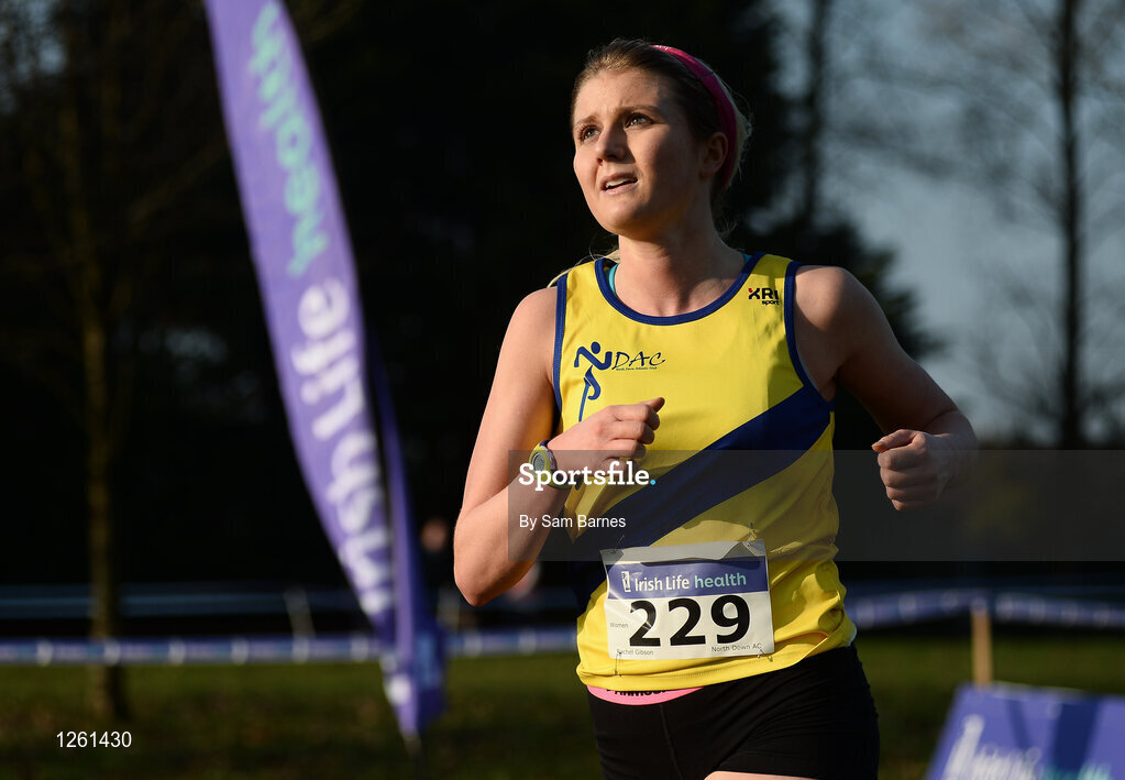 22 January 2017; Rachel Gibson of North Sligo AC, Co. Sligo, on her way to finishing third in the intermediate women's race during the Irish Life Health Intermediate & Juvenile Inter Club Relay at Palace Grounds in Tuam, Co.Galway. Photo by Sam Barnes/Sportsfile