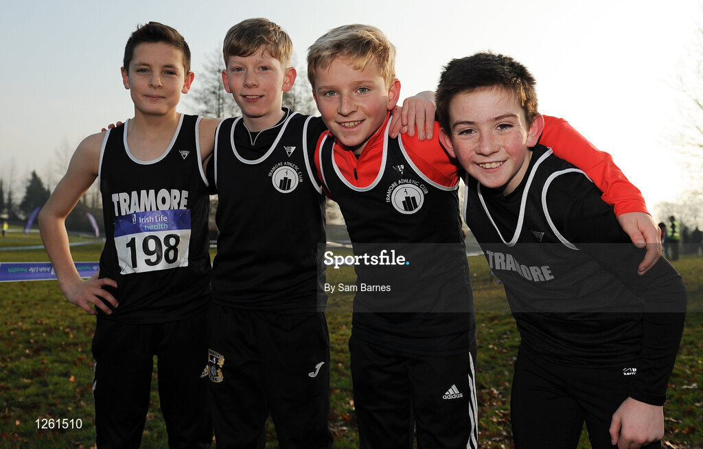 22 January 2017; The Tranmore Boy's U12 team, from left, Tom Halley, Mark Shanahan, Rory McCann and Ben Kiely before competing in the Irish Life Health Intermediate & Juvenile Inter Club Relay at Palace Grounds in Tuam, Co.Galway. Photo by Sam Barnes/Sportsfile