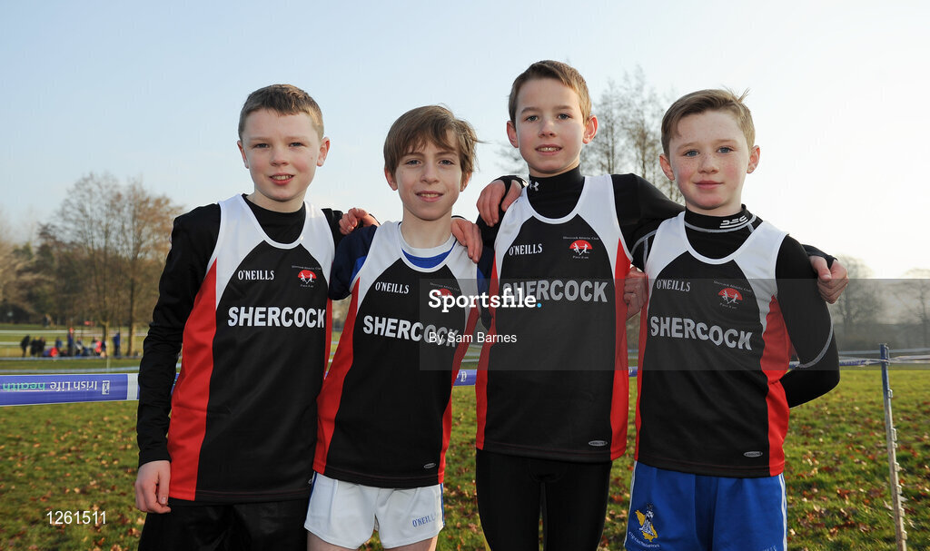 22 January 2017; The Shercock A.C. Boy's U12 team, from left, Luke Markey, Caoimhím McGee, Micheal Carroll and Andrew Ormiston ahead of competing in the Irish Life Health Intermediate & Juvenile Inter Club Relay at Palace Grounds in Tuam, Co.Galway. Photo by Sam Barnes/Sportsfile