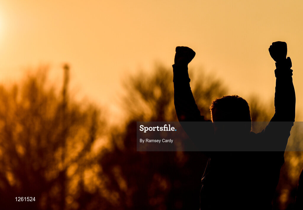 22 January 2017; Mayo manager Stephen Rochford celebrates a goal in the final minute during the Connacht FBD League Section A Round 3 match between Roscommon and Mayo at St. Brigids GAA Club in Kiltoom, Co. Roscommon. Photo by Ramsey Cardy/Sportsfile