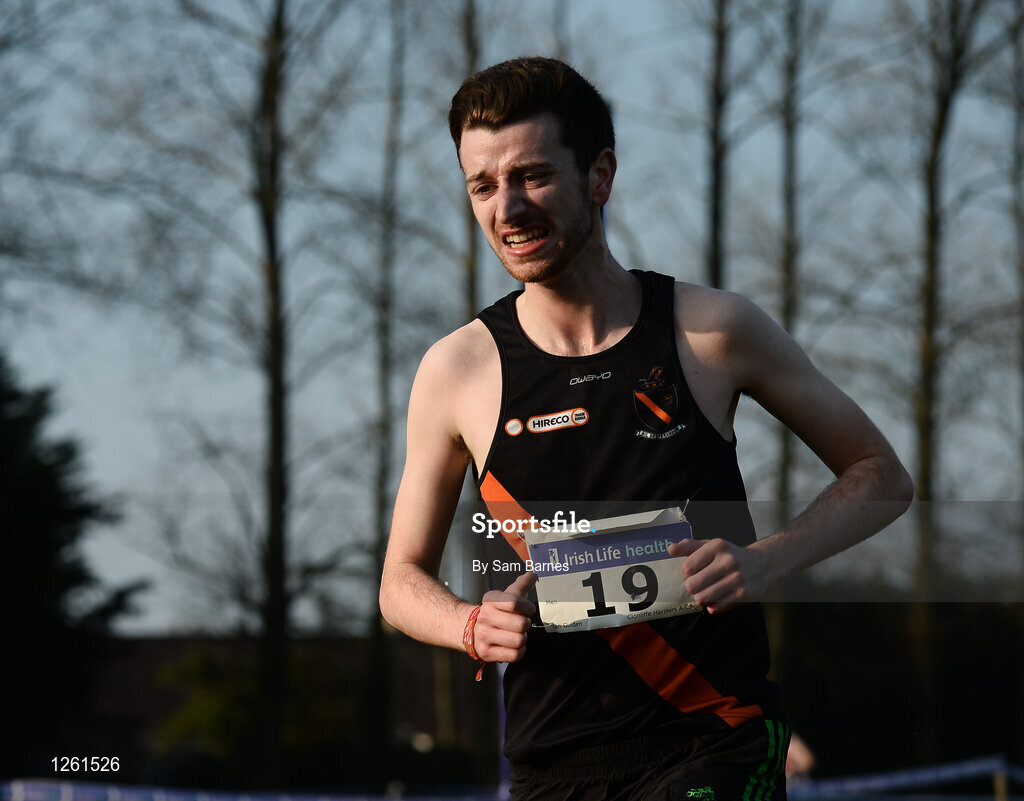 22 January 2017; Ian Guiden of Clonliffe Harriers AC, Co Dublin, on his way to finishing third in the intermediate men's race during the Irish Life Health Intermediate & Juvenile Inter Club Relay at Palace Grounds in Tuam, Co.Galway. Photo by Sam Barnes/Sportsfile