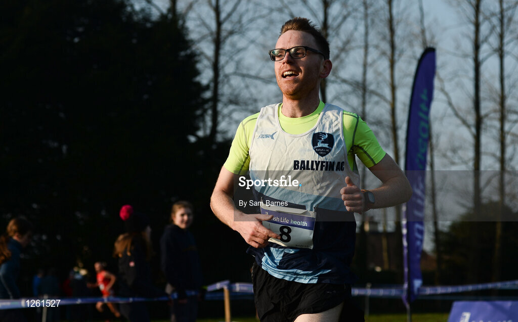 22 January 2017; Colin Maher of Ballyfin AC, Co Laois, on his way to finishing second in the intermediate men's race during the Irish Life Health Intermediate & Juvenile Inter Club Relay at Palace Grounds in Tuam, Co.Galway. Photo by Sam Barnes/Sportsfile