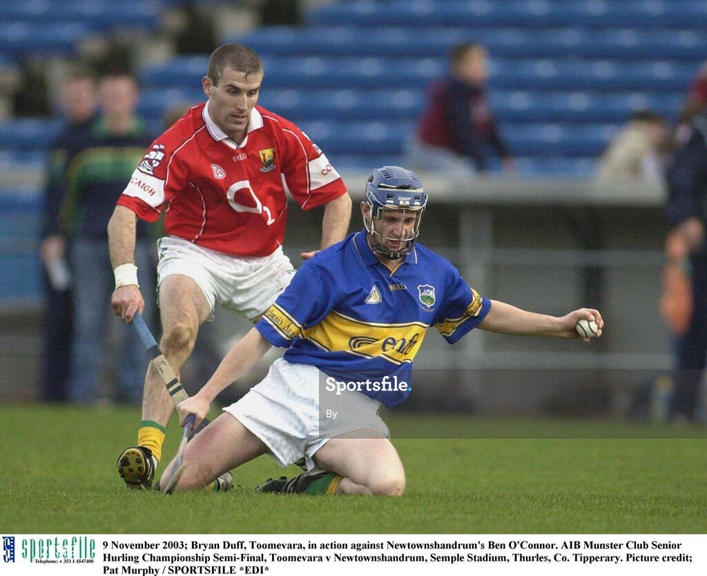 9 November 2003; Bryan Duff, Toomevara, in action against Newtownshandrum's Ben O'Connor. AIB Munster Club Senior Hurling Championship Semi-Final, Toomevara v Newtownshandrum, Semple Stadium, Thurles, Co. Tipperary. Picture credit; Pat Murphy / SPORTSFILE *EDI*