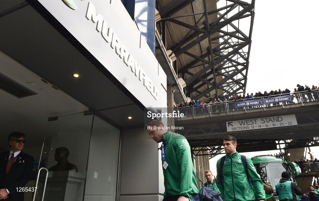 4 February 2017; Tommy Bowe of Ireland followed by teammate Conor Murray arrive ahead of the RBS Six Nations Rugby Championship match between Scotland and Ireland at BT Murrayfield Stadium in Edinburgh, Scotland. Photo by Brendan Moran/Sportsfile