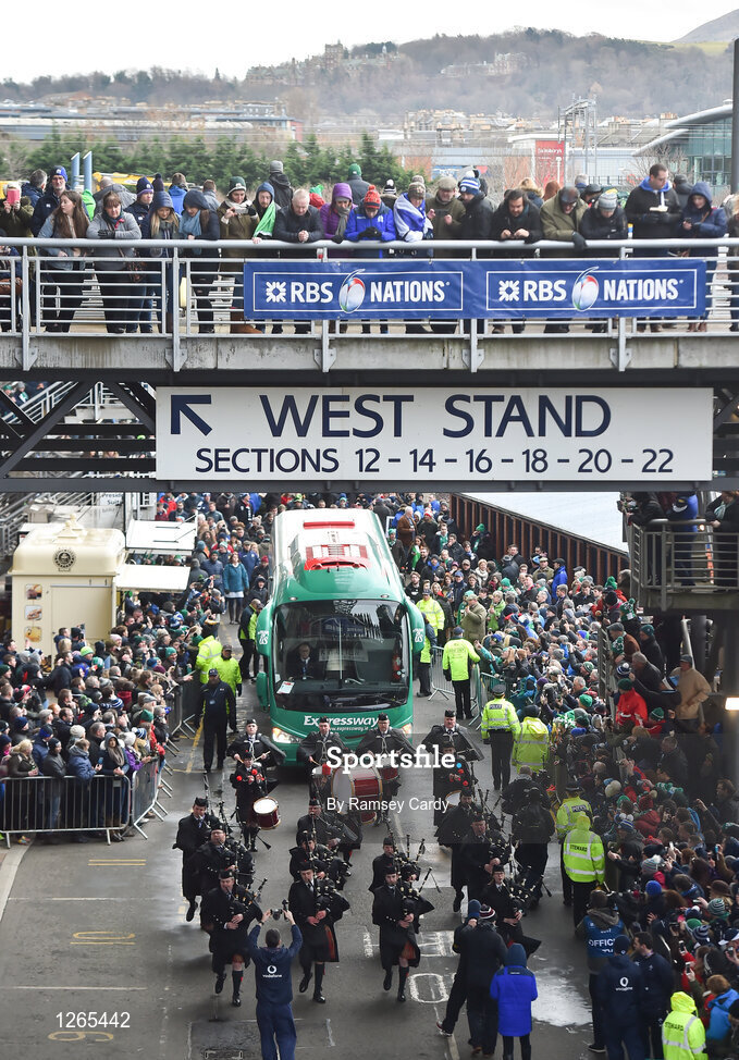 4 February 2017; The Ireland team bus arrive ahead of the RBS Six Nations Rugby Championship match between Scotland and Ireland at BT Murrayfield Stadium in Edinburgh, Scotland. Photo by Ramsey Cardy/Sportsfile