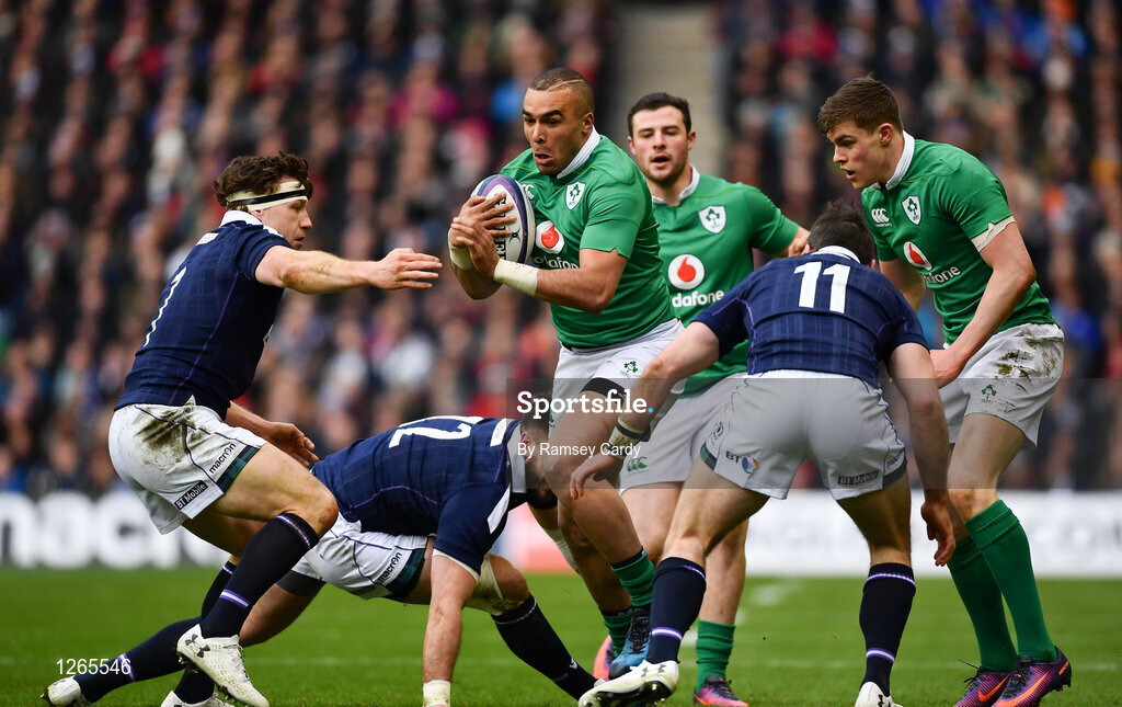 4 February 2017; Simon Zebo of Ireland makes a break during the RBS Six Nations Rugby Championship match between Scotland and Ireland at BT Murrayfield Stadium in Edinburgh, Scotland. Photo by Ramsey Cardy/Sportsfile