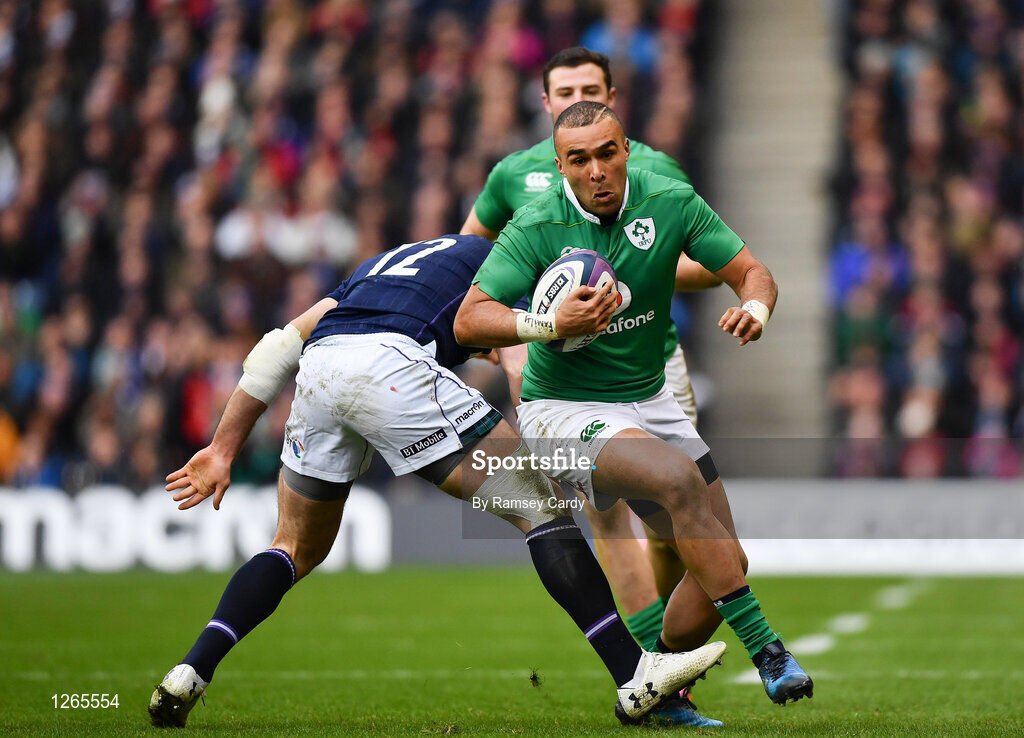 4 February 2017; Simon Zebo of Ireland in action against Alex Dunbar of Scotland during the RBS Six Nations Rugby Championship match between Scotland and Ireland at BT Murrayfield Stadium in Edinburgh, Scotland. Photo by Ramsey Cardy/Sportsfile