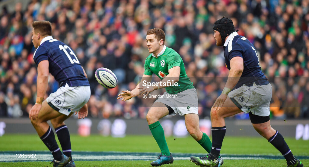 4 February 2017; Paddy Jackson of Ireland passes during the RBS Six Nations Rugby Championship match between Scotland and Ireland at BT Murrayfield Stadium in Edinburgh, Scotland. Photo by Brendan Moran/Sportsfile