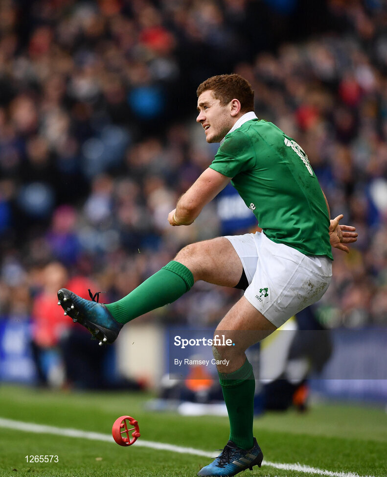 4 February 2017; Paddy Jackson of Ireland watches his conversion during the RBS Six Nations Rugby Championship match between Scotland and Ireland at BT Murrayfield Stadium in Edinburgh, Scotland. Photo by Ramsey Cardy/Sportsfile
