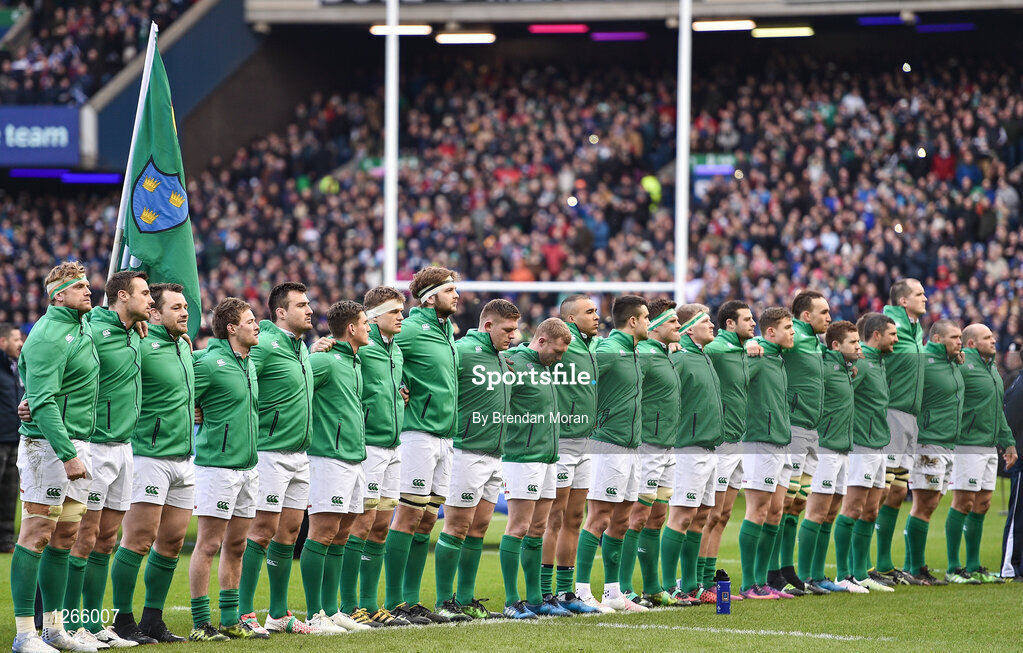 4 February 2017; The Ireland team line up for the national anthem prior to the RBS Six Nations Rugby Championship match between Scotland and Ireland at BT Murrayfield Stadium in Edinburgh, Scotland. Photo by Brendan Moran/Sportsfile