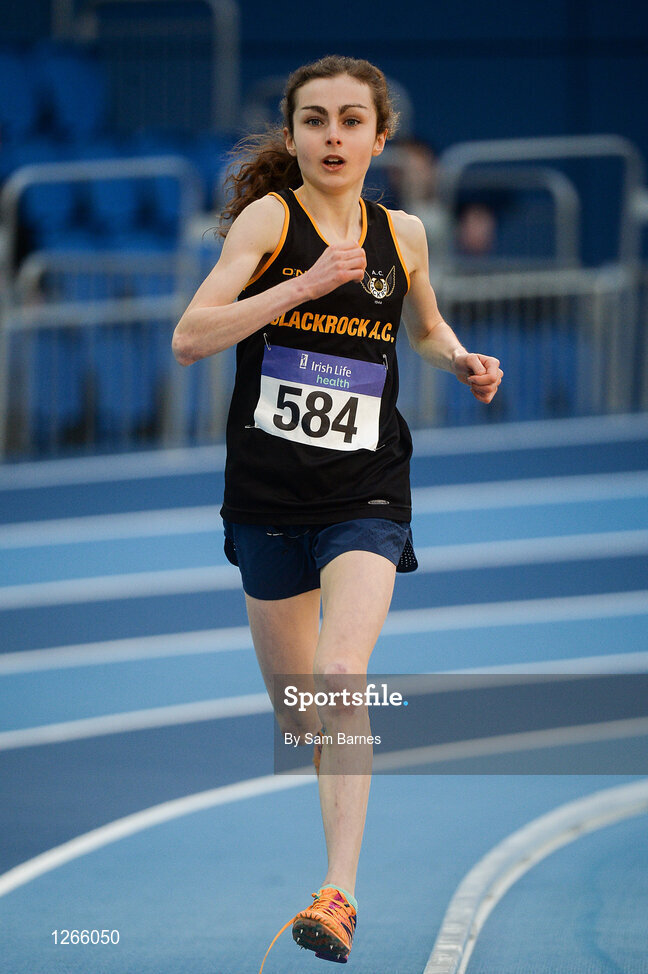 5 February 2017; Amy Rose Farrell of Blackrock AC, Co Dublin, on her way to winning the senior women's 3000m during the Irish Life Health AAI Indoor Games at Sport Ireland National Indoor Arena in Abbotstown, Dublin. Photo by Sam Barnes/Sportsfile