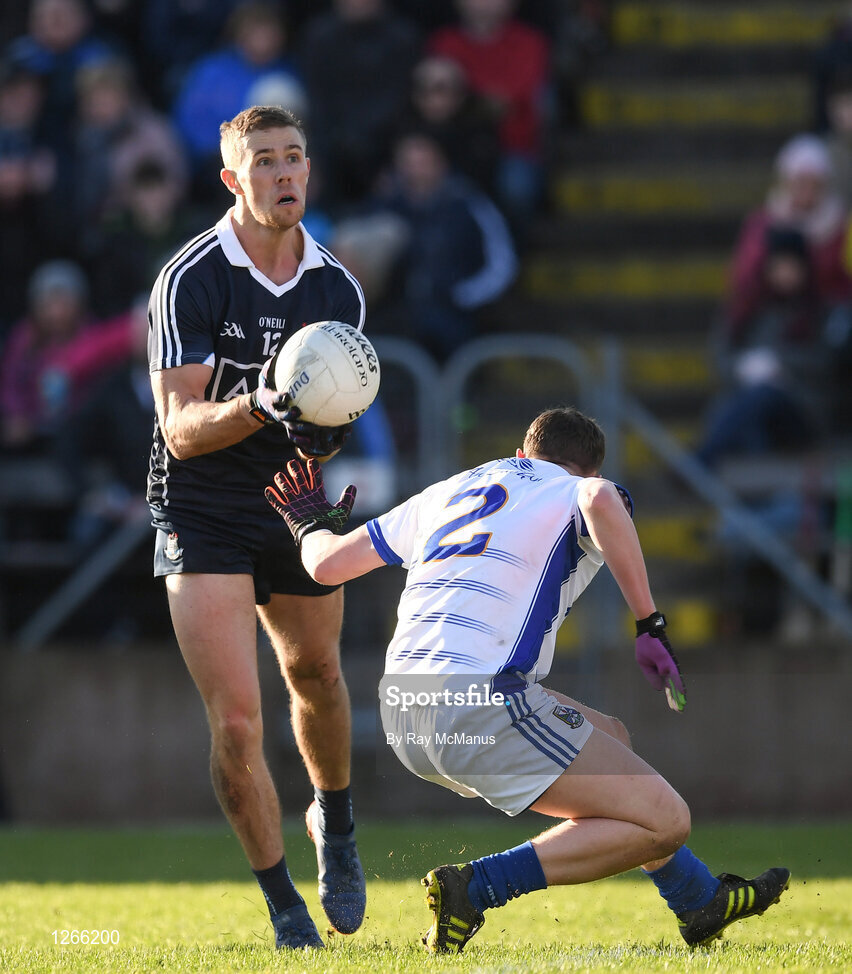 5 February 2017; Paul Mannion of Dublin scores his side's 14th point under pressure from Cavan corner back Fergal Reilly during the Allianz Football League Division 1 Round 1 match between Cavan and Dublin at Kingspan Breffni Park in Cavan. Photo by Ray McManus/Sportsfile